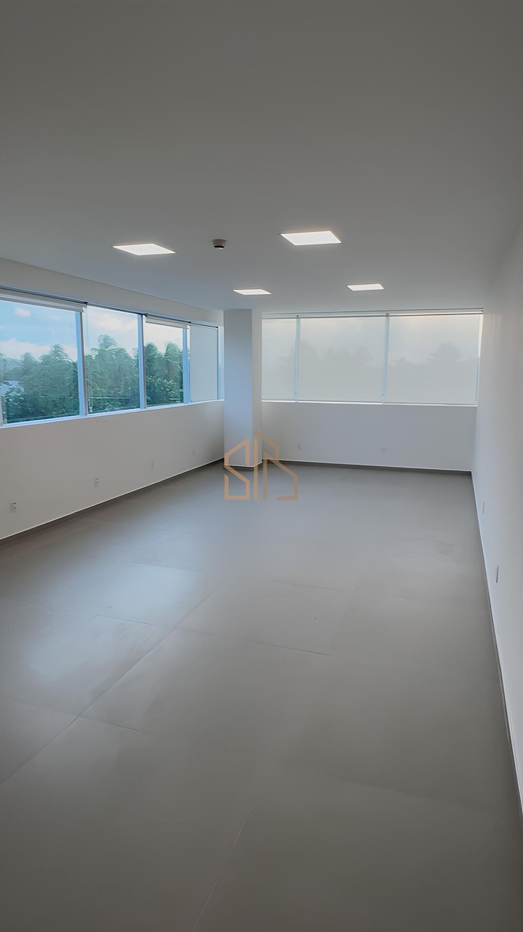 Sala pronta para alugar com vista para o mar, com porcelanato 1mX1m; ar condicionado de piso 30.000 btus; cortinas, iluminação , teto em drywall , tomadas; armários no banheiro e fechadura eletrônica Intelbras com Wi-Fi!